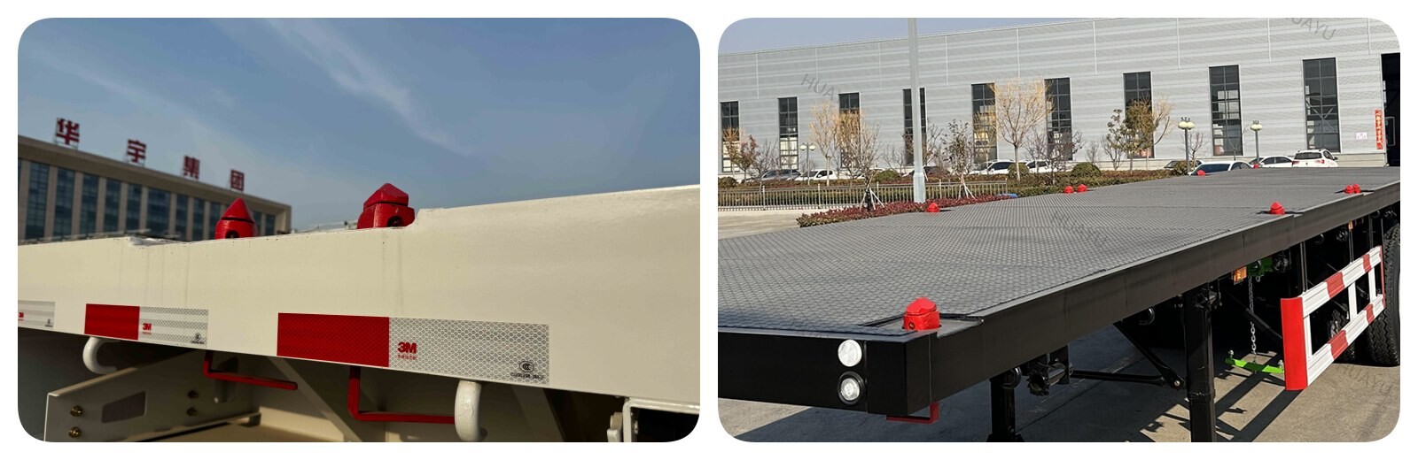 المعدات المساعدة: وفقًا للاحتياجات الفعلية، قد تكون المقطورة شبه المقطورة المسطحة مجهزة بمجموعة متنوعة من المعدات الإضافية