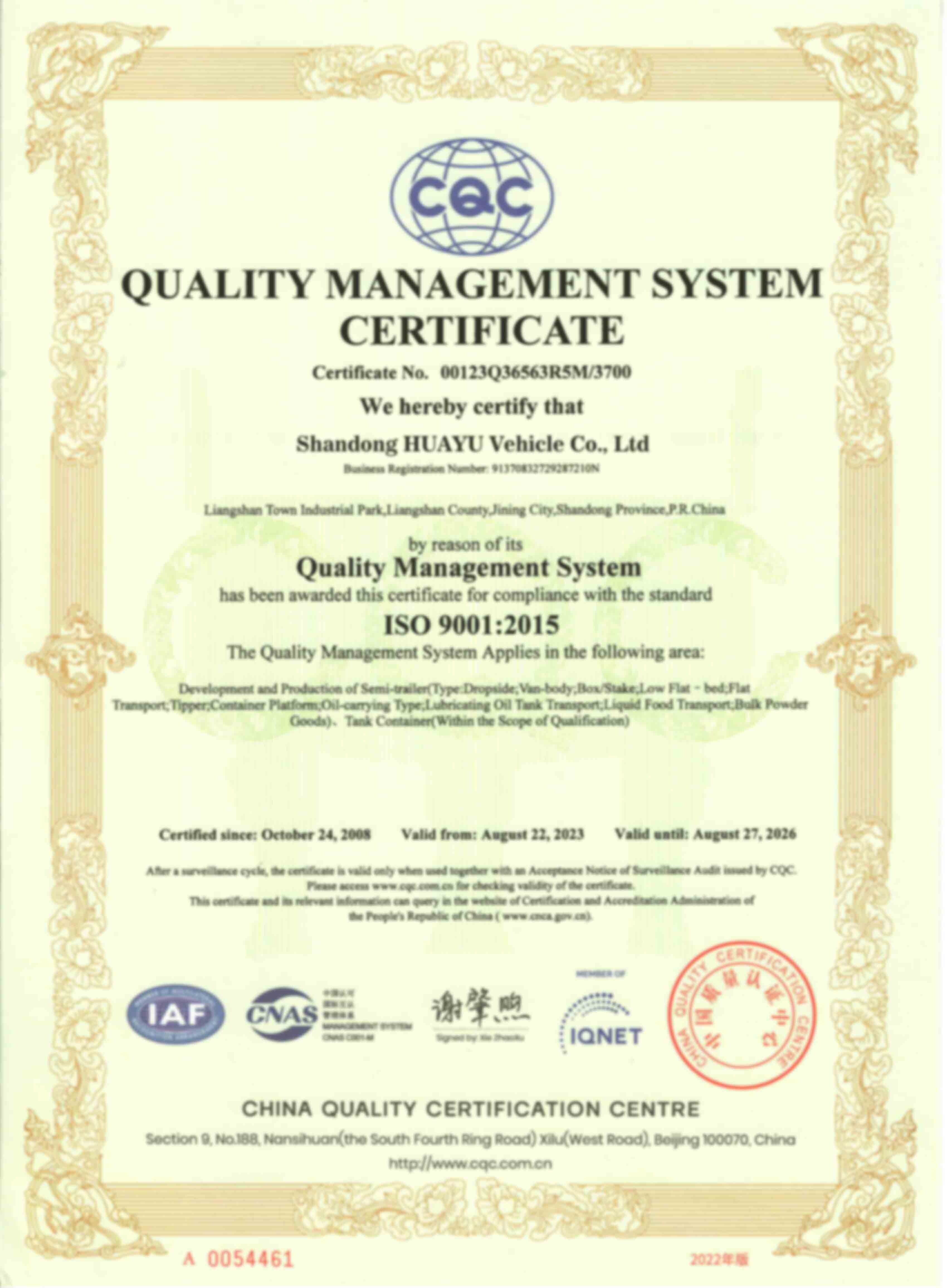Le volume d'exportation de HUAYU atteint 20 millions USD. La zone de l'usine HUAYU a été étendue à 600 000 mètres carrés, 5 lignes de production de semi-remorques ont été ajoutées et elle dispose de 3 zones d'usine.