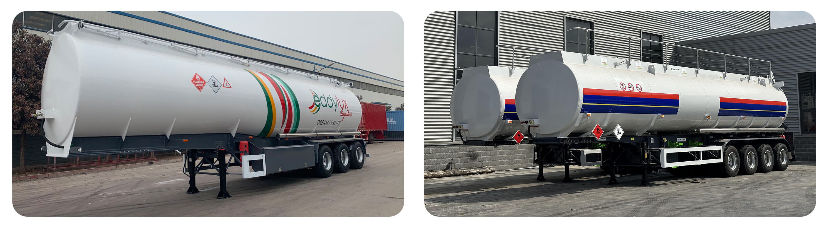 Volume de la remorque-citerne à pétrole : La capacité du réservoir est généralement en litres (L), et la capacité peut être personnalisée de 20 000 L à 90 000 L en fonction des besoins de transport