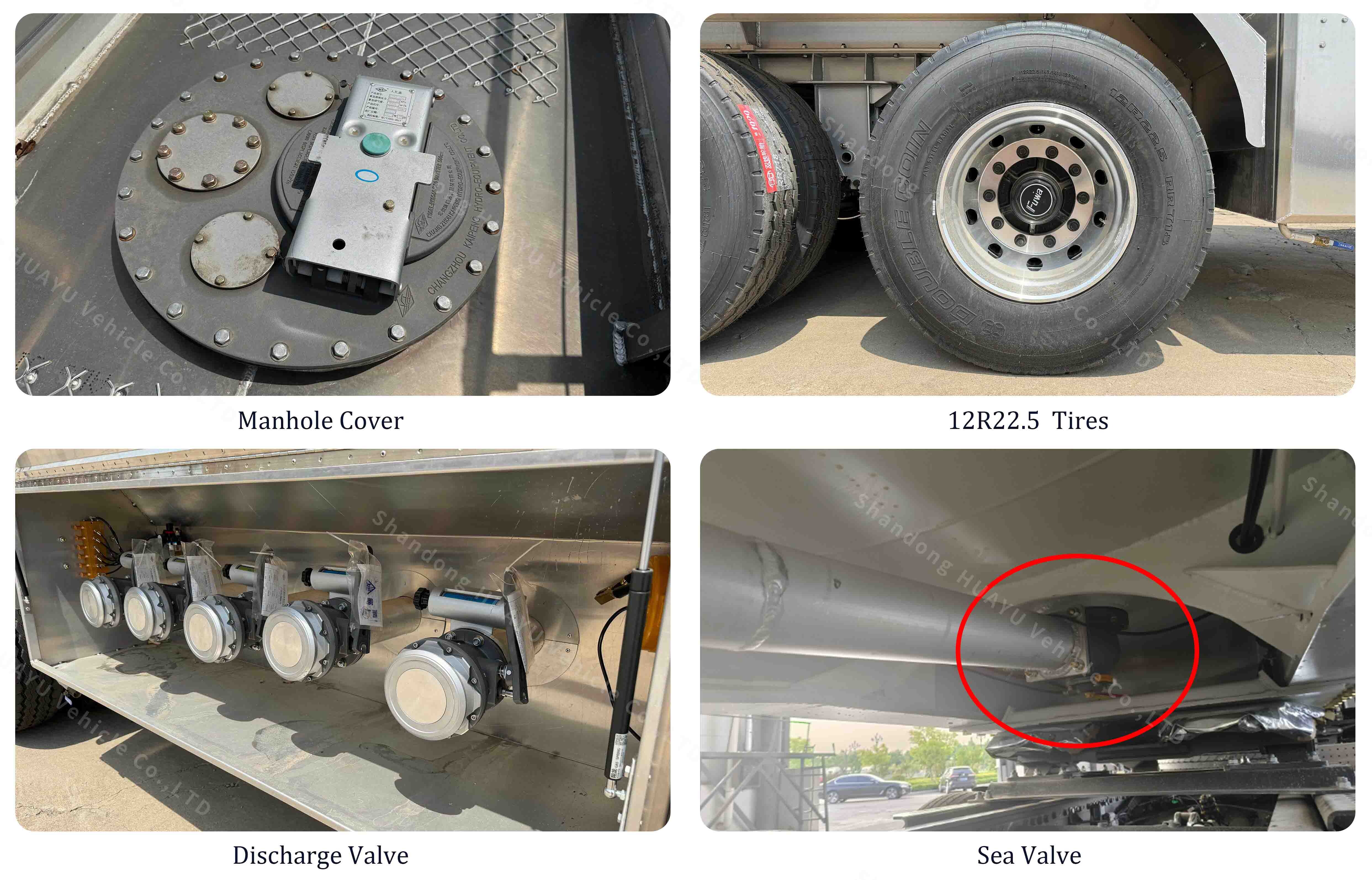 HUAYU Высокопрочная рама:Рама танкерного полуприцепа предназначена для выдерживания веса цистерны и груза и обычно изготавливается из высокопрочной стали для обеспечения стабильности и долговечности.